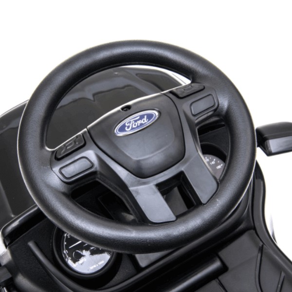 El Correpasillos Ford Ranger recomendado para niños +24 meses, con licencia oficial de marca, dispone de volante multifuncional con sonidos y de un cajón bajo el asiento y un pequeño maletero.
